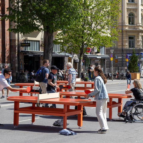 Idén om rundpingisbord, med rack och bollar testades första gången tillsammans med Göteborg stad på Grönsakstorget. Utformningen utmanar traditionella föreställningar om vad pingis är, vem som kan spela och var det kan spelas. De rundade kortsidorna gör bordet perfekt för rundpingis, vilket skapar en plats där fler kan mötas och ha roligt tillsammans.